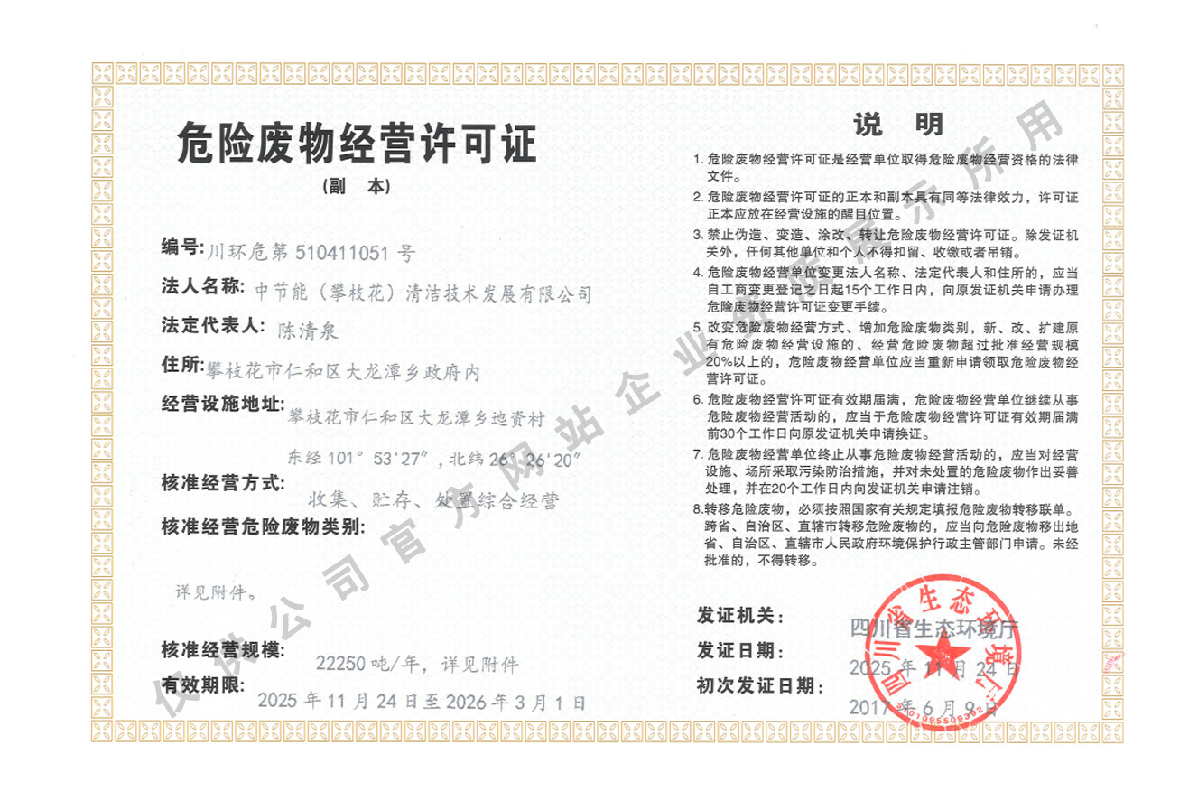 危險(xiǎn)廢物經(jīng)營(yíng)許可證