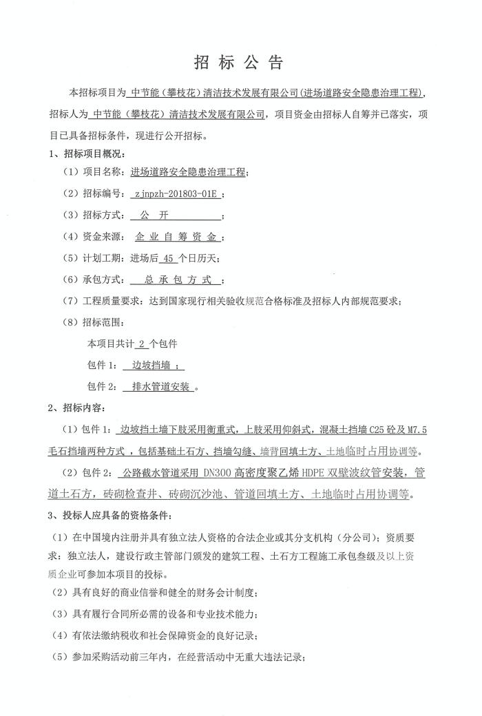 進(jìn)場(chǎng)道路安全隱患治理工程招標公告