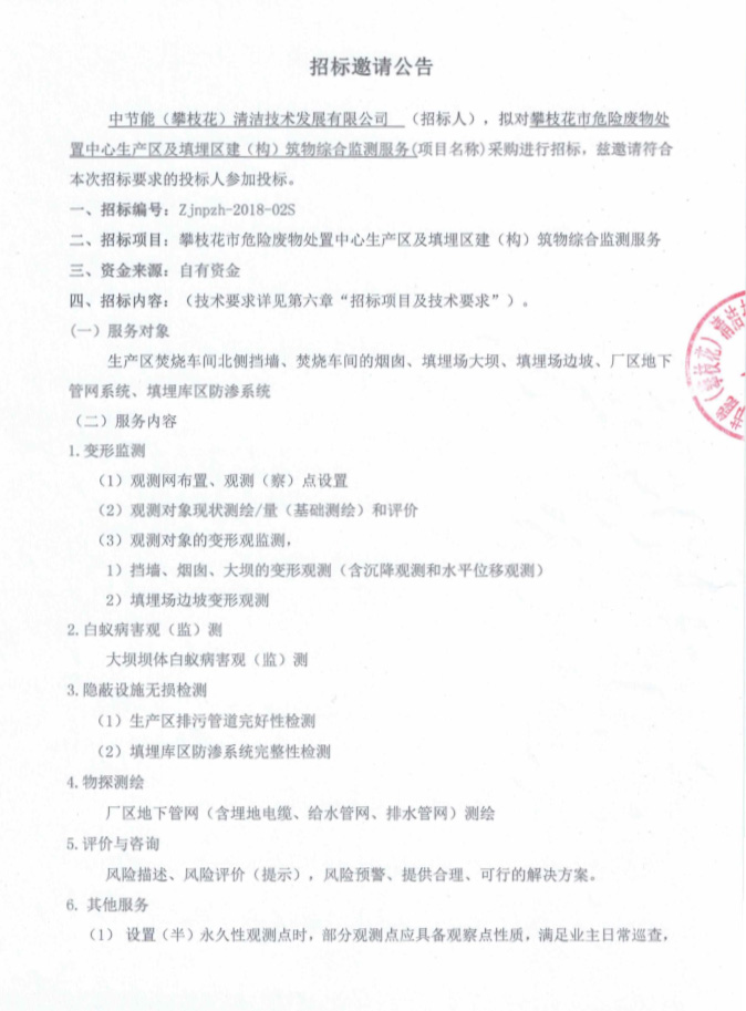 生產(chǎn)區及填埋區建(構)筑物綜合檢測服務(wù)采購進(jìn)行招標邀請公告